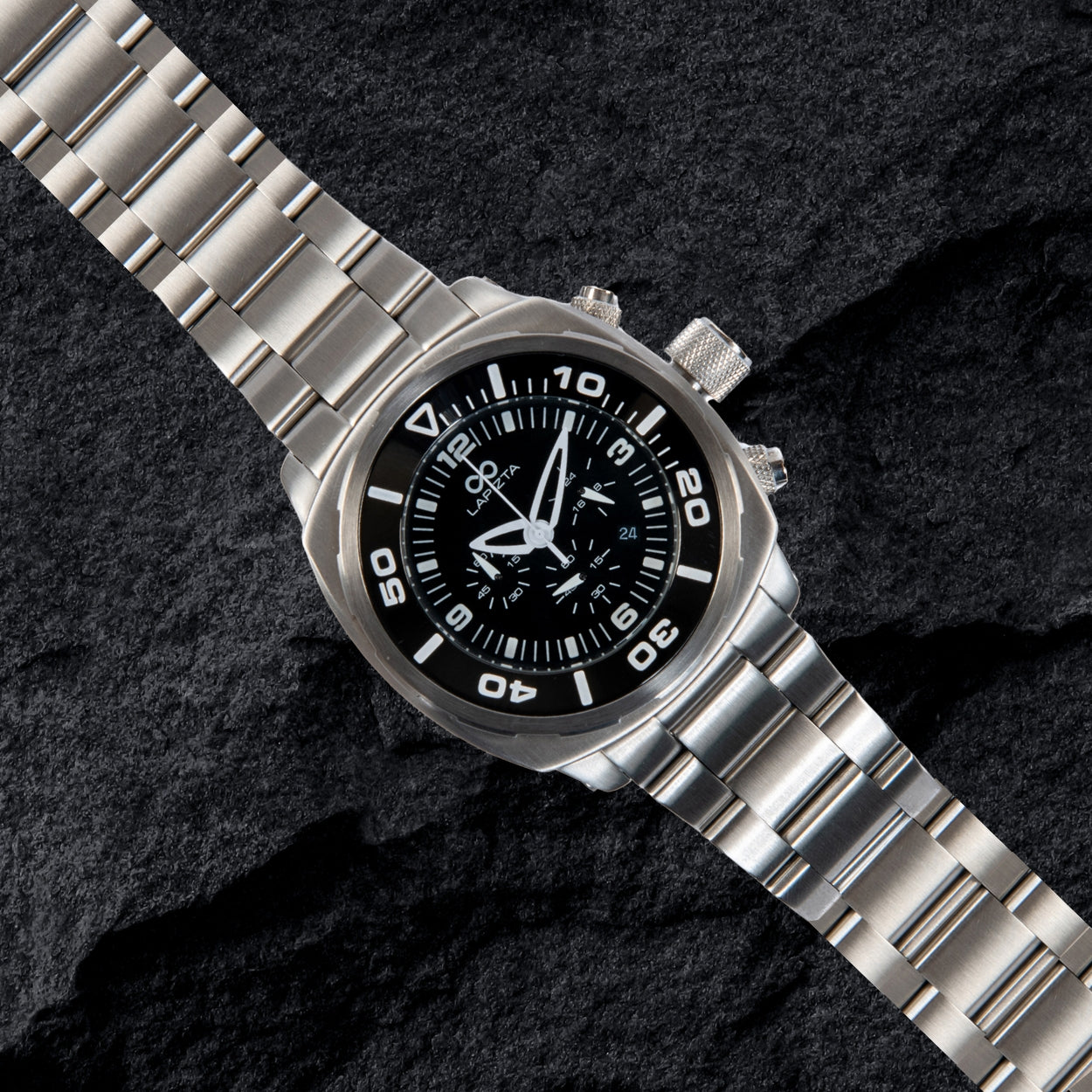 Lapizta Zatara 43/48MM 100M WR Black Chronograph Watch with Steel Bracelet