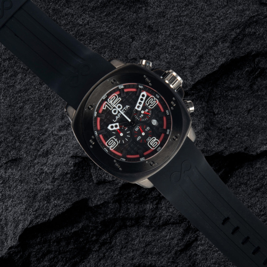 Lapizta Accentor 100M WR Steel and Red Chronograph Racing Watch In 48MM