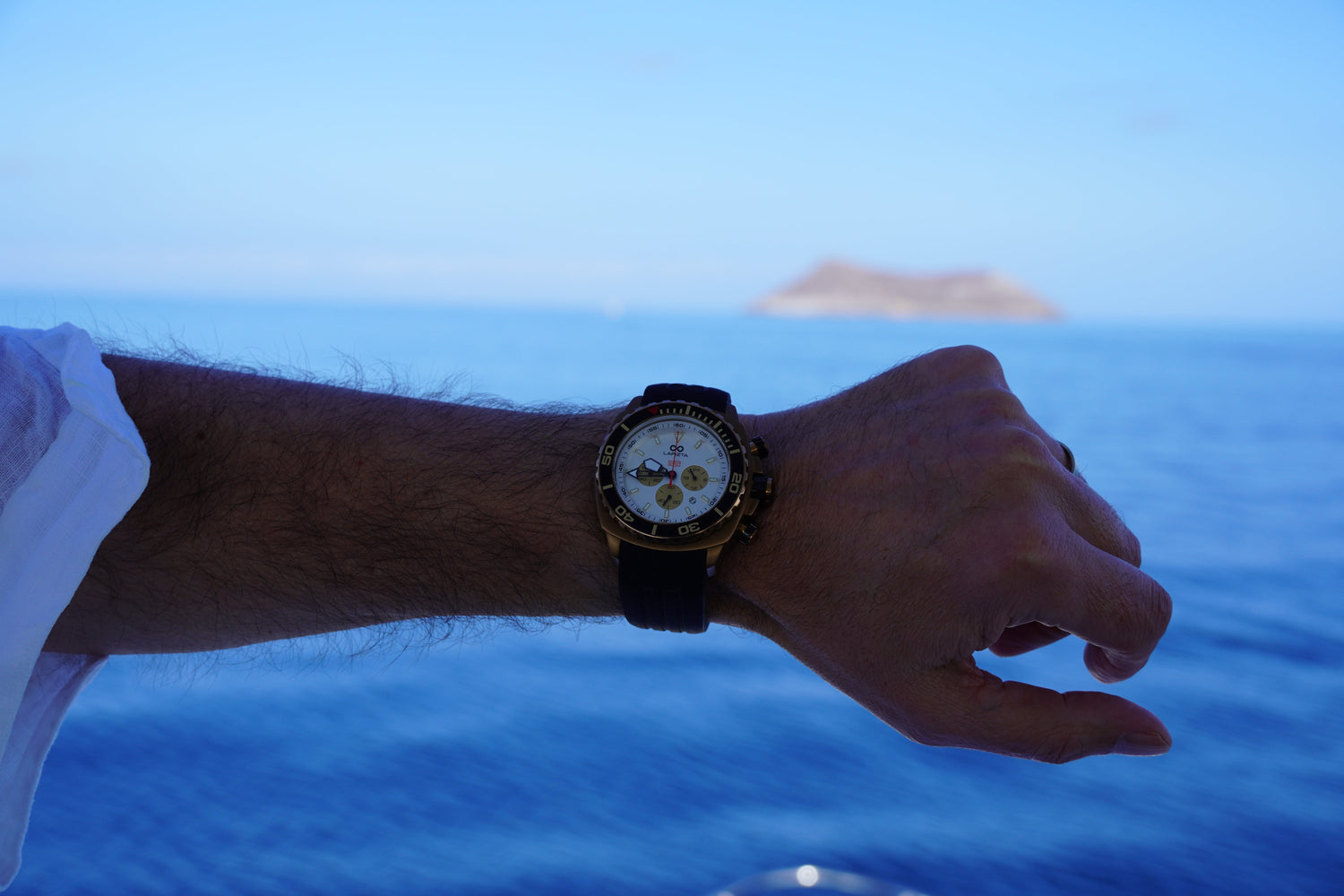 Slate Watch Company pilots a yacht in the Galapagos islands with the Lapizta Izurus L24.1803.