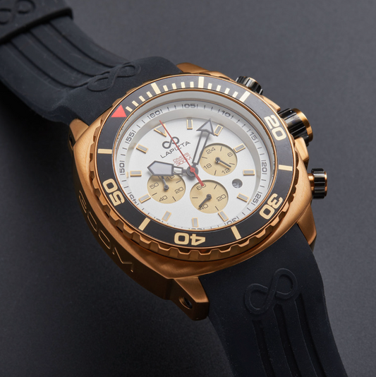 Lapizta Izurus 300M WR 48MM White Dial Gold Chronograph Dive Watch