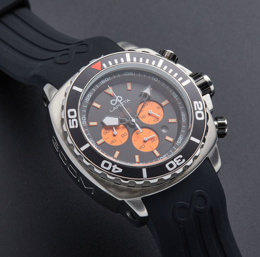 Lapizta Izurus 300M WR 48MM Orange Dial Steel Chronograph Dive Watch